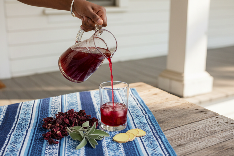 Made with Roselle (Hibiscus), Pineapple sage, Lime basil, Black Tea, Ginger and Cinnamon